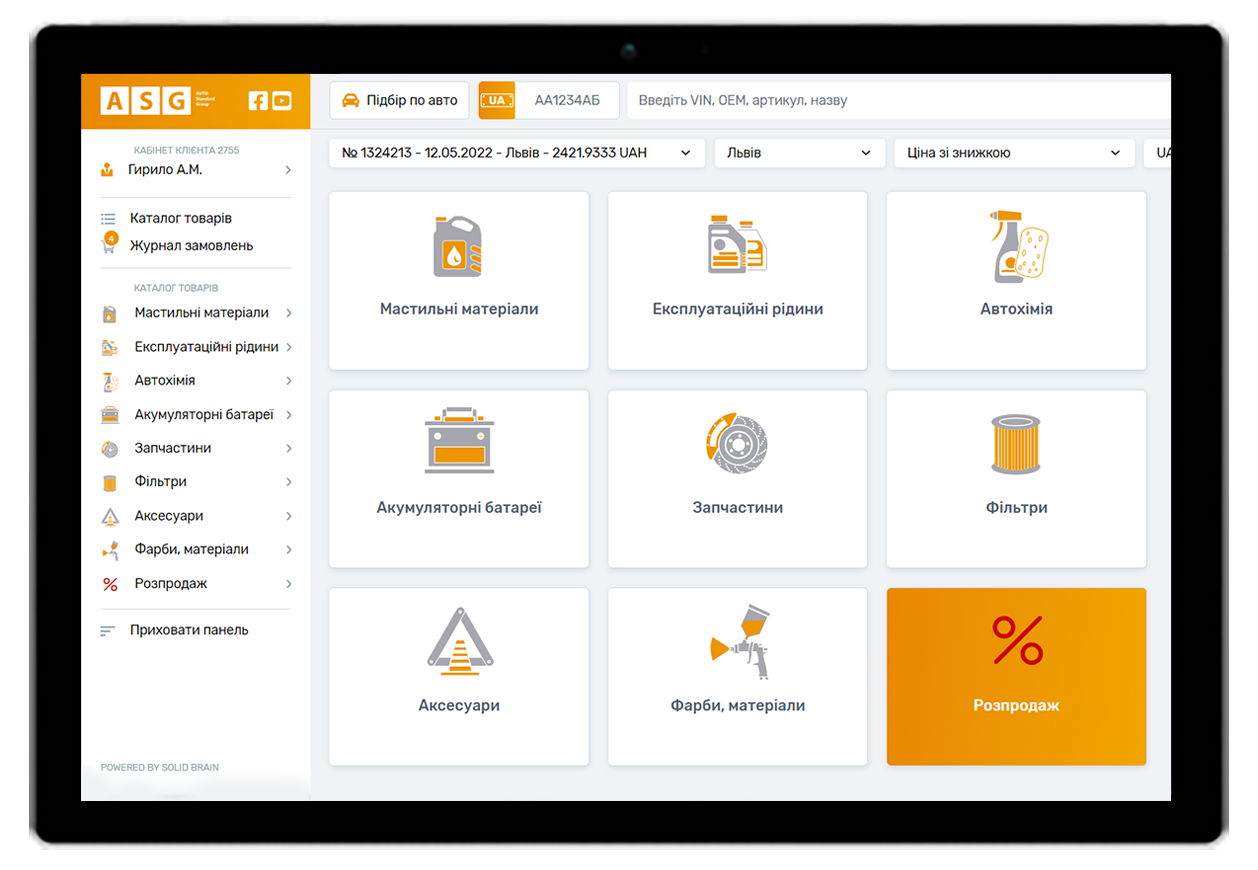 З метою забезпечення найвищого рівня сервісу для наших клієнтів, ми розробили он-лайн систему підбору автозапчастин, пошуку аналогів товарів, а також зручного розміщення замовлень.